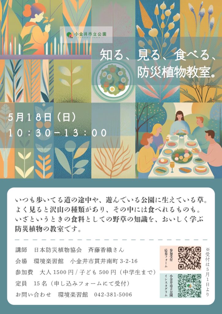 いざという時の食料としての野草の知識を、おいしく学ぶ防災植物の教室を開催いたします。